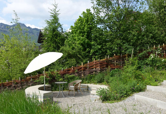 Der Garten wurde 2020/2021 aufwändig umgestaltet. Winkler&Richard Naturgärten haben den ganzen Bereich rund ums Haus möglichst naturnah angelegt, damit viele einheimische Pflanzen und Tiere hier ihren Platz finden können.