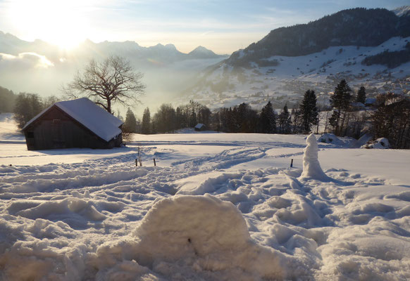 Der Winter beginnt im Ulula vor der Haustüre. Fürs Schlitteln und Schneemänner bauen reicht der Garten und das angrenzende Land des Bauern allemal aus. Wer Skifahren möchte, fährt vom Haus aus direkt hinunter an die Hauptstrasse, von wo man vom Bus ins Skigebiet Arvenbühl oder zum Sessellift Mattstock gebracht wird.
