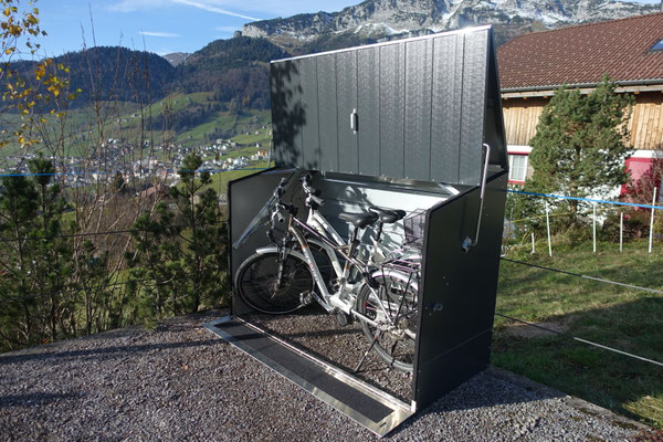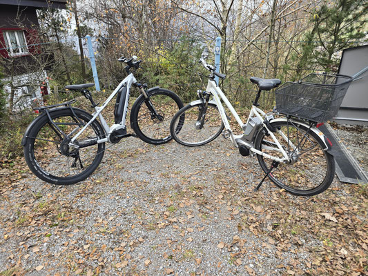 Die zwei E-Bikes stehen zur Verfügung und ermöglichen es, in 10 Minuten und ohne grosse Kraftanstrengung im Dorf einkaufen zu gehen.